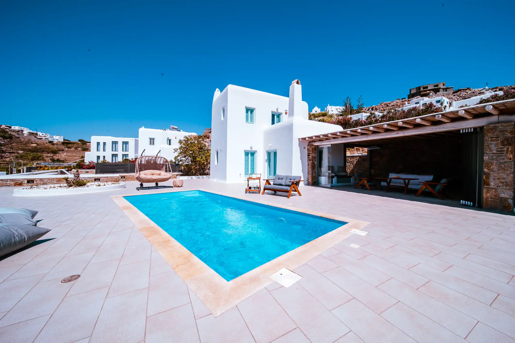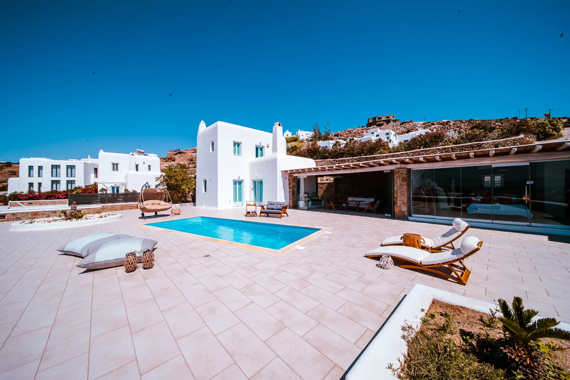 Villa Sympatico is located in one of the most sought-after areas of Mykonos, close to Psarou and Ornos beaches, and just a short drive from Mykonos Town. You’re near everything — beach clubs, restaurants, the center — but still in a more private, relaxed setting.